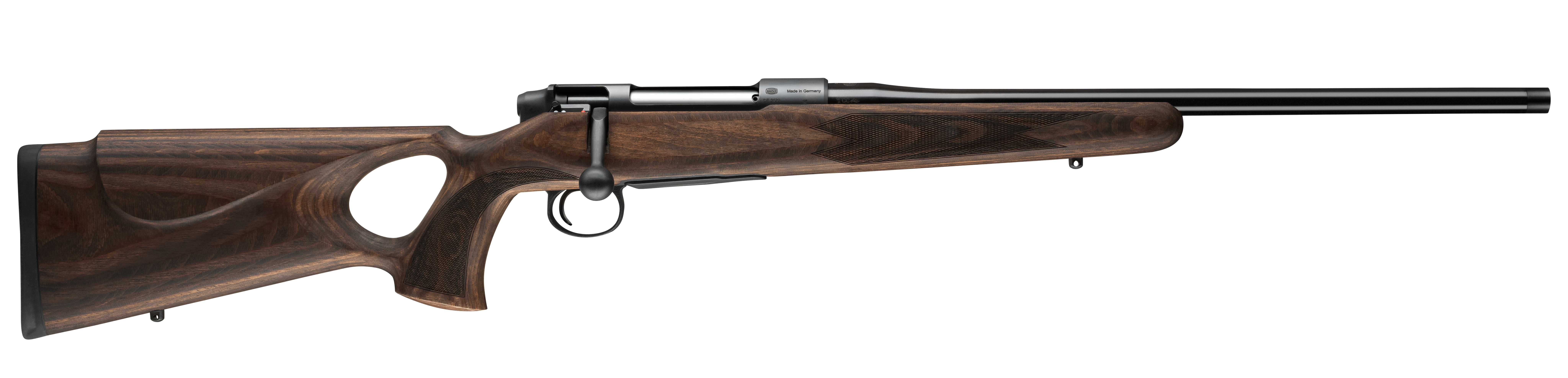 Ultrasolide Bauweise aus besten Materialien und die Konzentration auf das für den Einsatzzweck Wesentliche: Massive Drei-Warzen- Verriegelung, kalt gehämmerter Lauf und eine lautlos bedienbare 3-Stellungs-Abzugstollen-Sicherung.