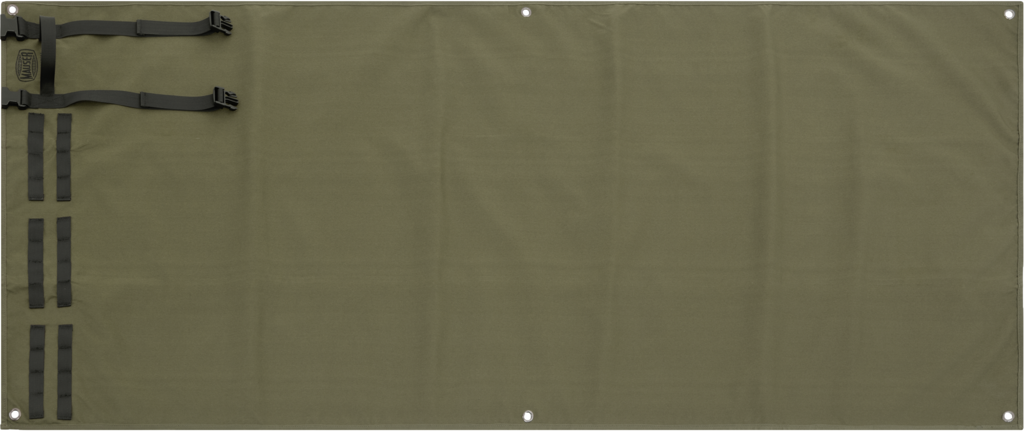 Lightweight, waterproof shooting mat with eyelets and MOLLE loops for secure use and easy transport.